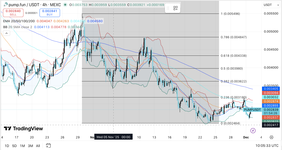 Key levels for Pump.fun remain well-defined as the market enters December.