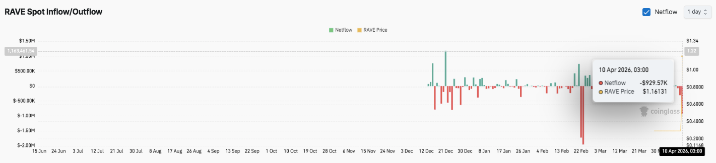 RAVE traded within a narrow accumulation range between $0.20 and $0.35 for an extended period. However, price action changed abruptly with a vertical breakout that pushed the token into a new bullish phase.