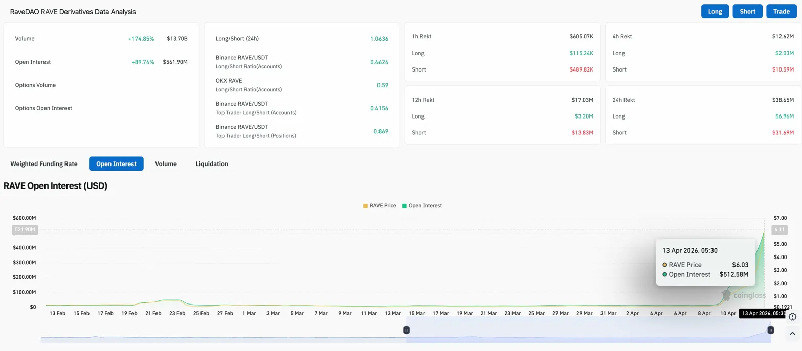 RAVE Derivatives: Shorts Absorbing Massive Pain As OI Explodes To $561M