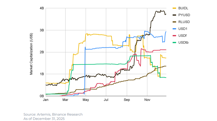 Recent research from Binance shows how RLUSD’s growth differs from that of other new stablecoins. In its 2025 stablecoin report, Binance said that RLUSD was one of six stablecoins to cross a $1 billion market cap during the year.