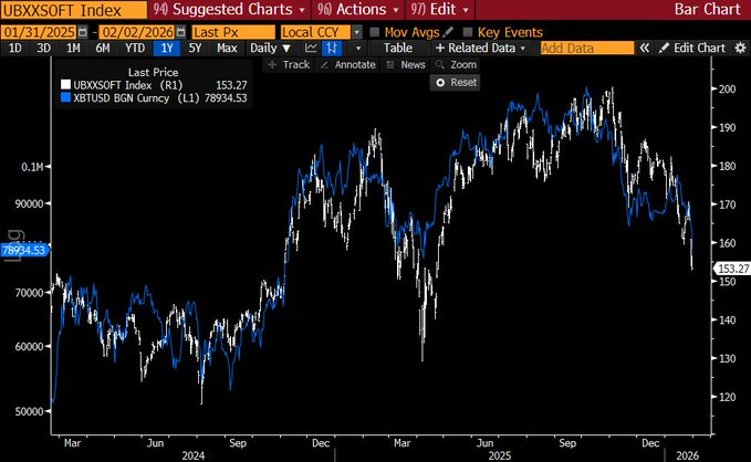 Некоторые инвесторы считают, что криптовалюта «сломана», но макроинвестор Рауль Пал считает, что этот нарратив вводит в заблуждение. Он отмечает, что акции биткоина и американских технологических компаний (особенно SaaS-компаний) движутся почти одинаково. Это показывает, что проблема не является специфичной для криптовалюты.