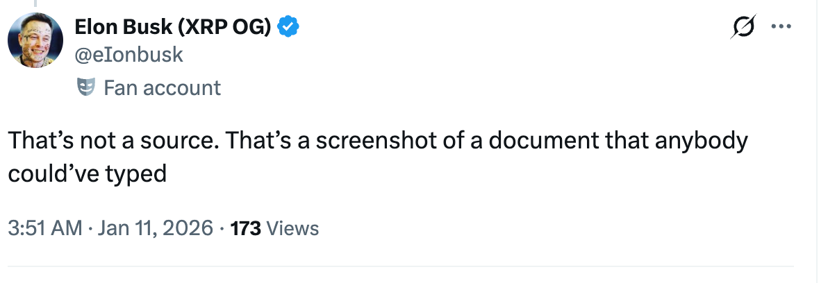 Другой представитель сообщества XRP, известный как XRP OG, поддержал эту опасение, заявив, что скриншоты сами по себе не подтверждают подлинность.