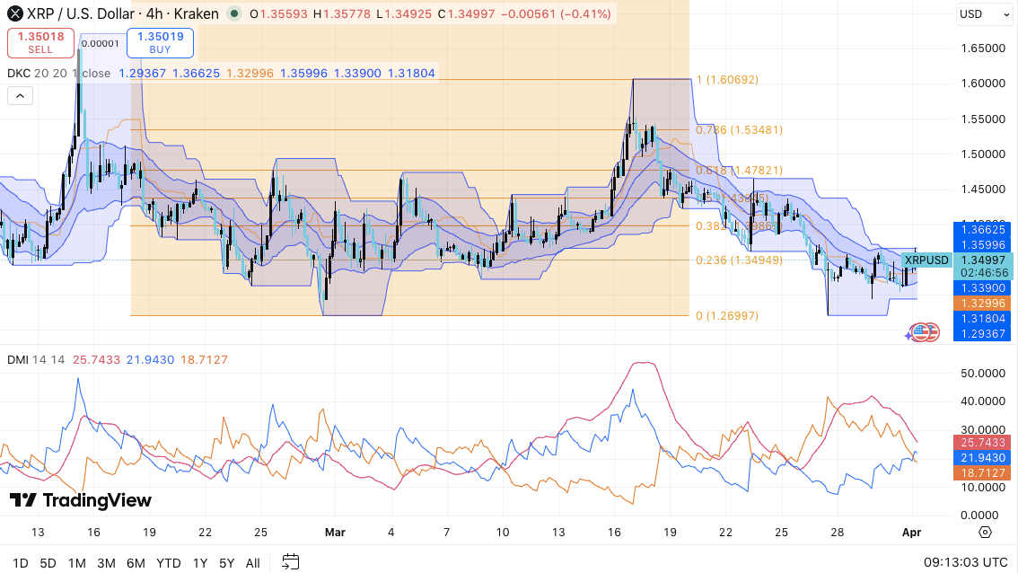 - XRP торгуется нисходящим каналом, сигнализируя о консолидации около поддержки $1.30–$1.40.