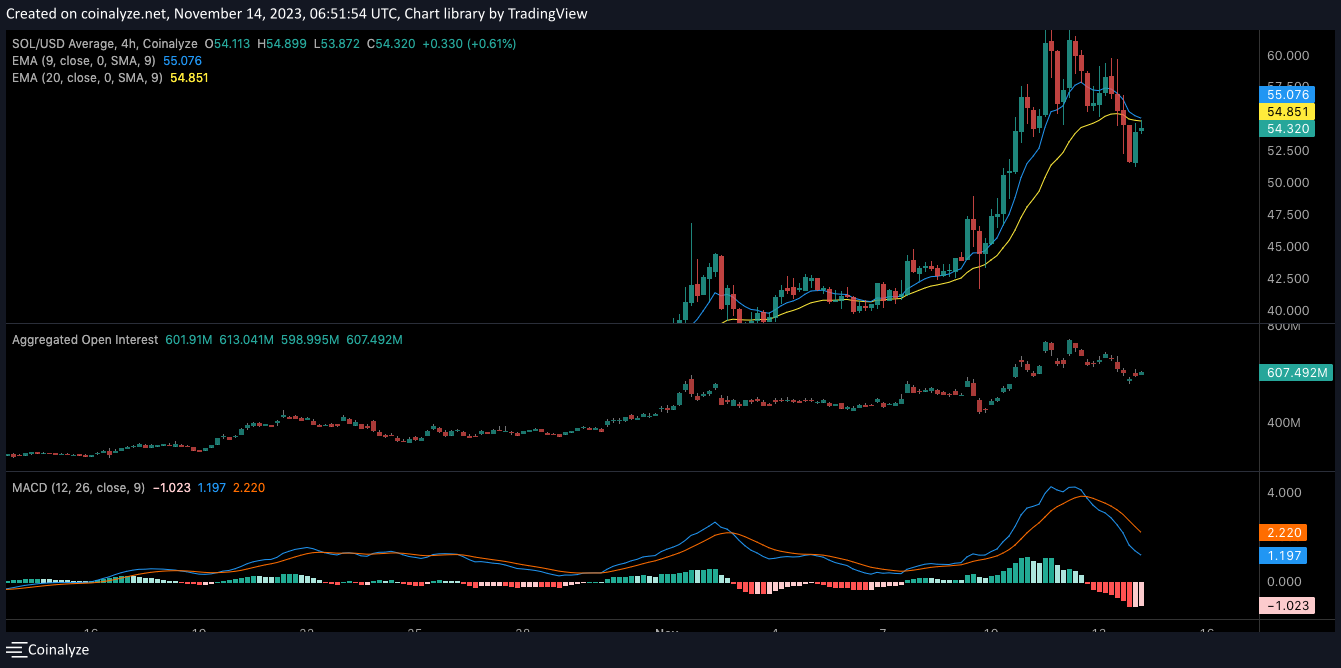 В результате неопределенности, вызванной падением, открытый интерес к токену Solana упал на 11%. Открытый интерес — это количество невыполненных контрактов на рынке. Когда открытый интерес увеличивается, это означает всплеск интереса к торговле токеном, сопровождающийся увеличением открытых позиций.