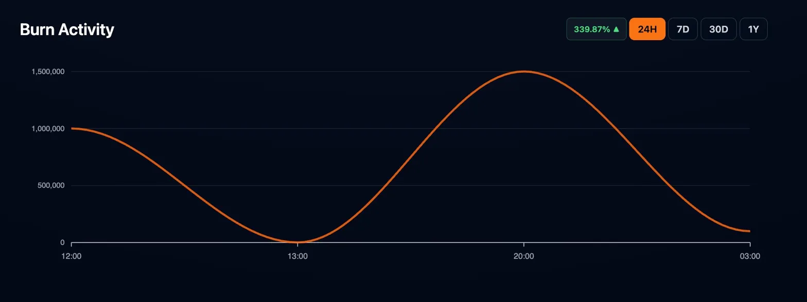 • The 24h burn rate jumped 339.87%, peaking near 1.5M SHIB per hour at 20:00 before dropping to near zero overnight.