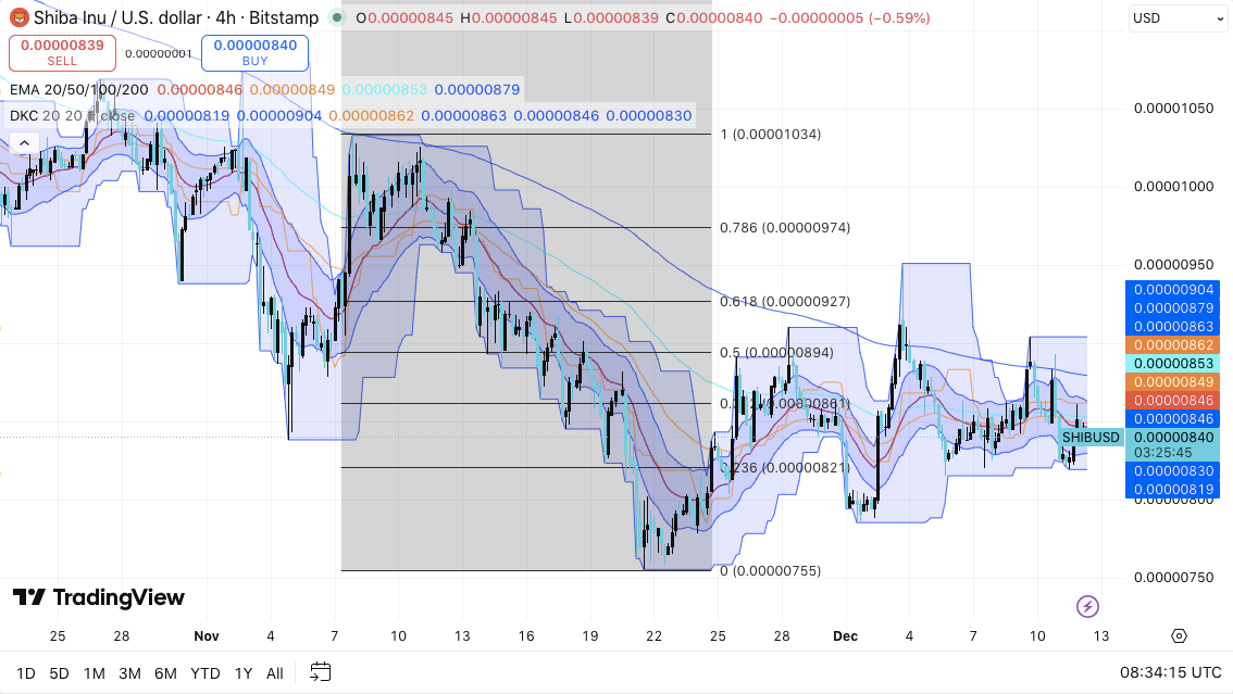 Shiba Inu continues to trade inside a tight range as price action, derivatives data, and ecosystem developments point to growing uncertainty. On the 4-hour chart, SHIB shows consolidation following a corrective decline that began in early November.