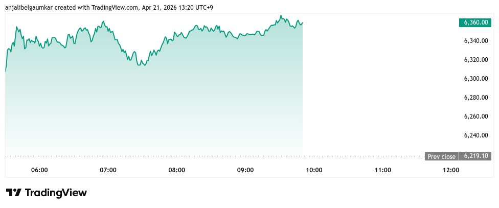 South Korea’s benchmark KOSPI index hit an all-time high of 6,360 on Tuesday, extending a rally that has now produced a 25% gain in just 15 trading sessions. The immediate catalyst was SK Hynix, which surged more than 4.6% after confirming it had begun mass production of a key memory module for advanced AI processors made by Nvidia.