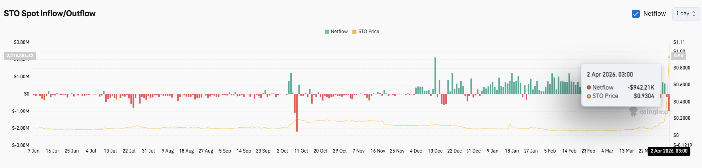 If inflows continue and momentum stabilizes, STO could retest $0.99 and attempt a breakout above the $1.00 level. Moreover, sustained buying pressure may push price into uncharted territory near $1.10–$1.30.