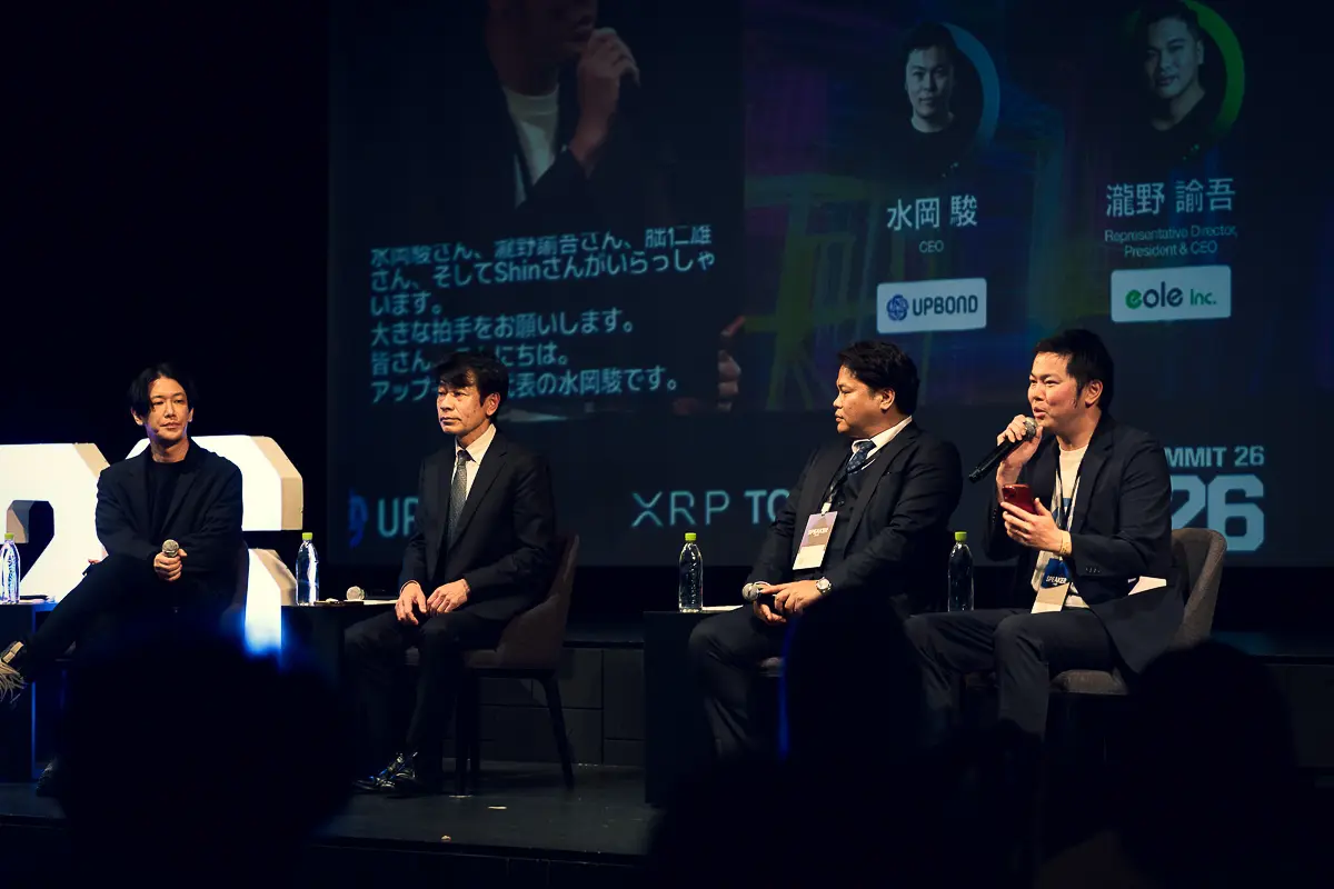 Iole Inc. CEO Yugo Takino / Osaka Digital Exchange Co., Ltd. President & CEO Kimio Mikazuki / Slash Vision Labs Founder & CEO Shin / UPBOND CEO Shun Mizuoka (Moderator)