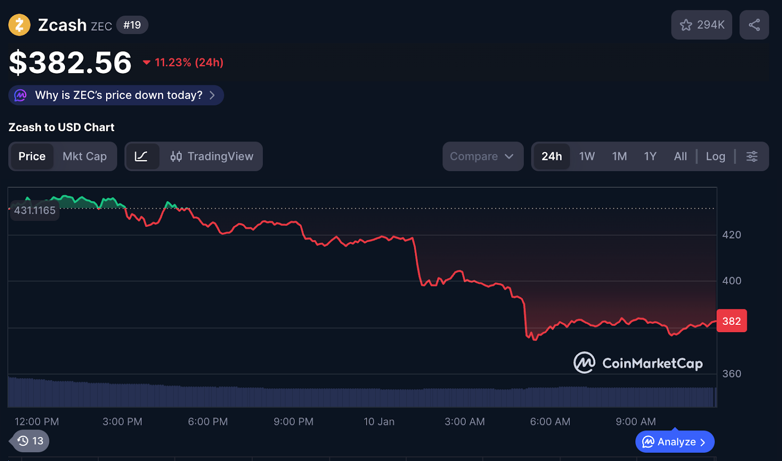 Market reaction was immediate. Zcash’s token, ZEC, dropped more than 14% shortly after the news broke. Over the past seven days, the token declined by roughly 29%, erasing a significant portion of the project’s market capitalization.