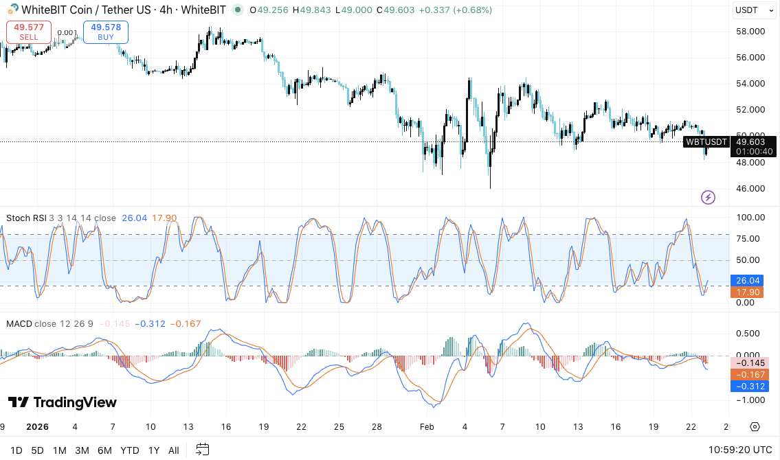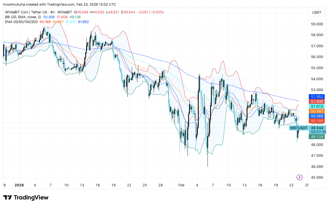 WhiteBIT Coin trades near $47 after a steady multi-week pullback from its recent swing high. The token now sits in a narrow consolidation zone as volatility contracts. Market data shows moderate trading activity and stable liquidity. Besides short-term weakness, long-term holders continue to monitor structural support levels.