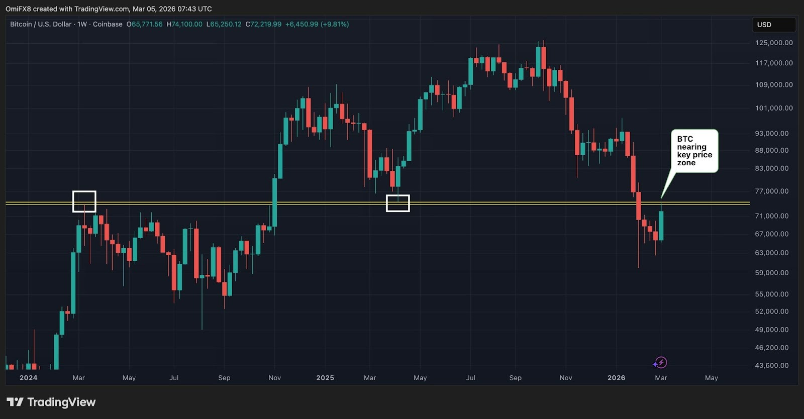 Market participants are now watching whether Bitcoin can hold above the $72,000 range. Maintaining that level could support further gains across the cryptocurrency market, while a move below it could weaken the rally.
