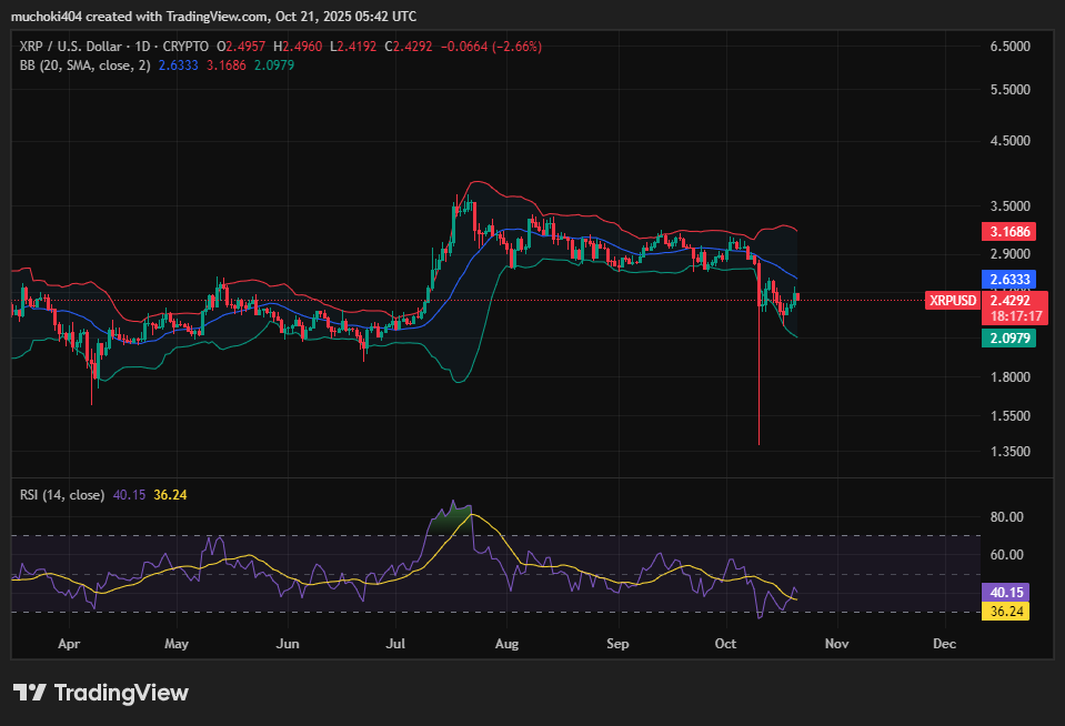 XRP price climbed above $2.40 (as of October 21), staging a significant recovery just 10 days after dipping below $1.90. This rebound unfolds as XRP crowd sentiment plunges to its most fearful level in nine months, according to on-chain analytics firm Santiment.