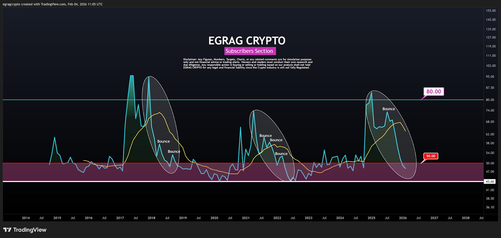 From a technical analysis standpoint, XRP price entered the bear market after its monthly Relative Strength Index slipped below 50. According to Egrag Crypto, XRP’s RSI peaked in 2025 at around 85 and has been declining ever since.