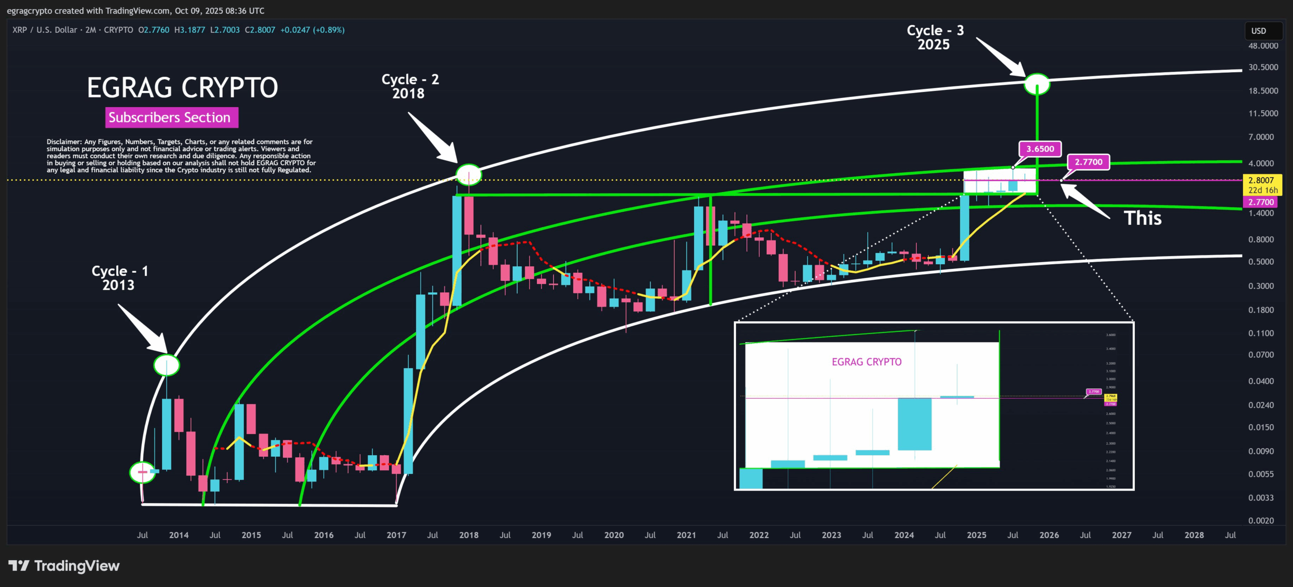 Egrag Crypto, a well-known chart analyst in the XRP community, addressed the market fear following a recent dip in XRP’s price. They stated that as long as XRP remains above $2.77 on the two-month timeframe, it’s just “noise”.