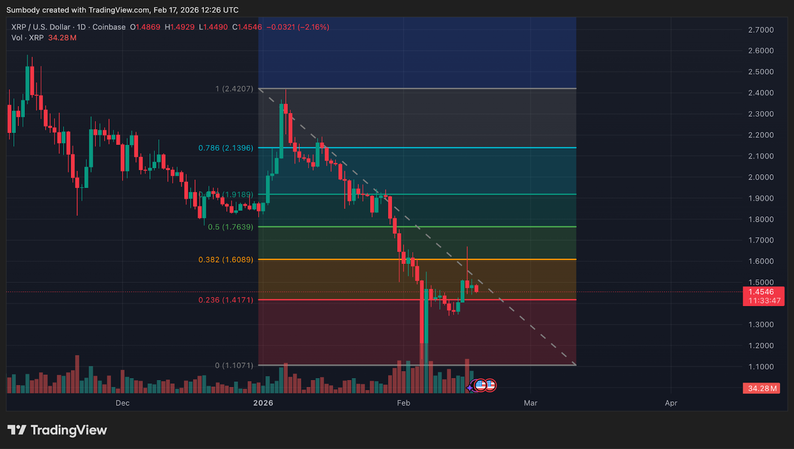 According to data from TradingView, XRP broke above the significant $1.50 resistance after a protracted downtrend, reaching $1.67 for only the second time in February 2026. Besides the rally’s extent, the nature of XRP’s price movement, which reflected a classic “higher-lows” reversal pattern, boosted users’ optimism.