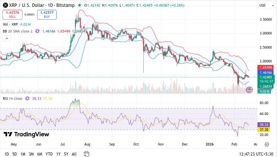 In February, the broader crypto market turned red, and XRP followed the trend. Selling pressure pushed the token down toward the $1.40–$1.50 range, marking a drop from January highs.