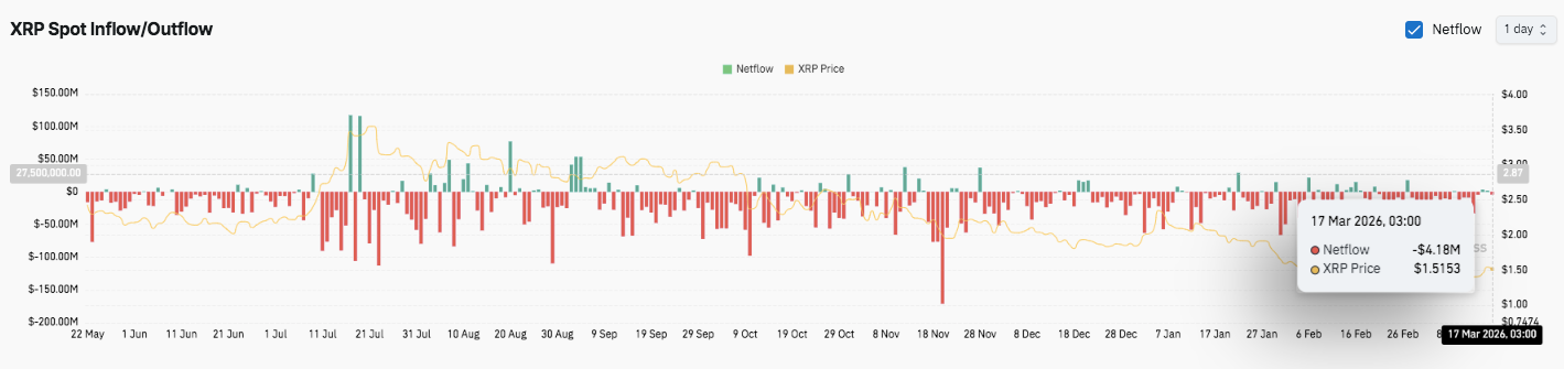 Spot flow data paints a similar picture. Persistent outflows dominate, outweighing occasional inflow spikes. Hence, market participants continue to distribute rather than accumulate. Although brief inflow periods appear, they fail to sustain upward momentum. This pattern aligns closely with the gradual price decline seen in recent months.