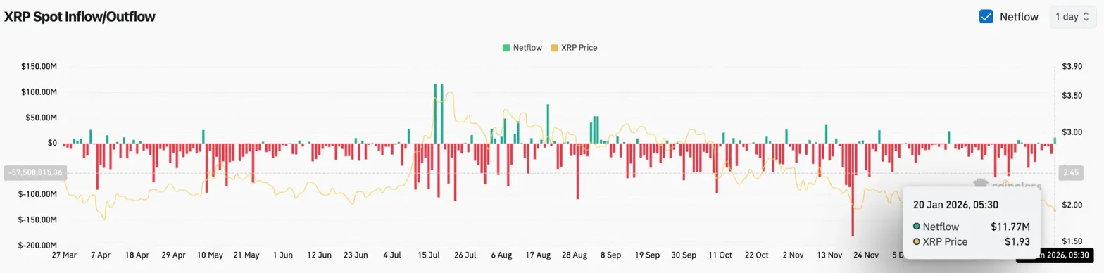 Exchange flow data shows some buyers stepping in despite the selloff. Coinglass recorded $11.77 million in net inflows on January 20, meaning coins are moving off exchanges into private wallets.