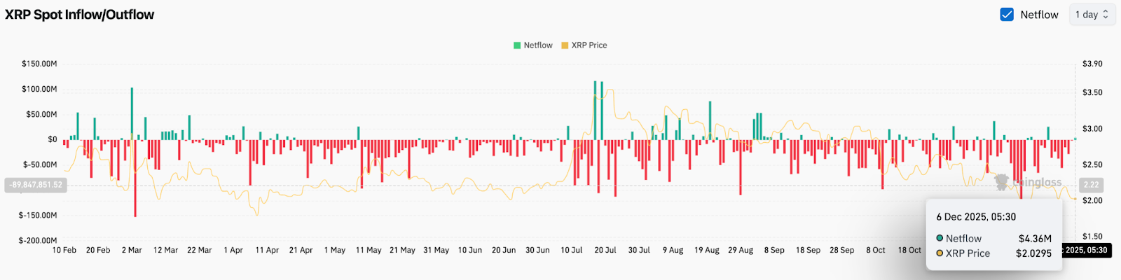 Coinglass data shows $4.36 million in inflows in the most recent session, a rare shift after weeks of persistent outflows that have weighed on sentiment.