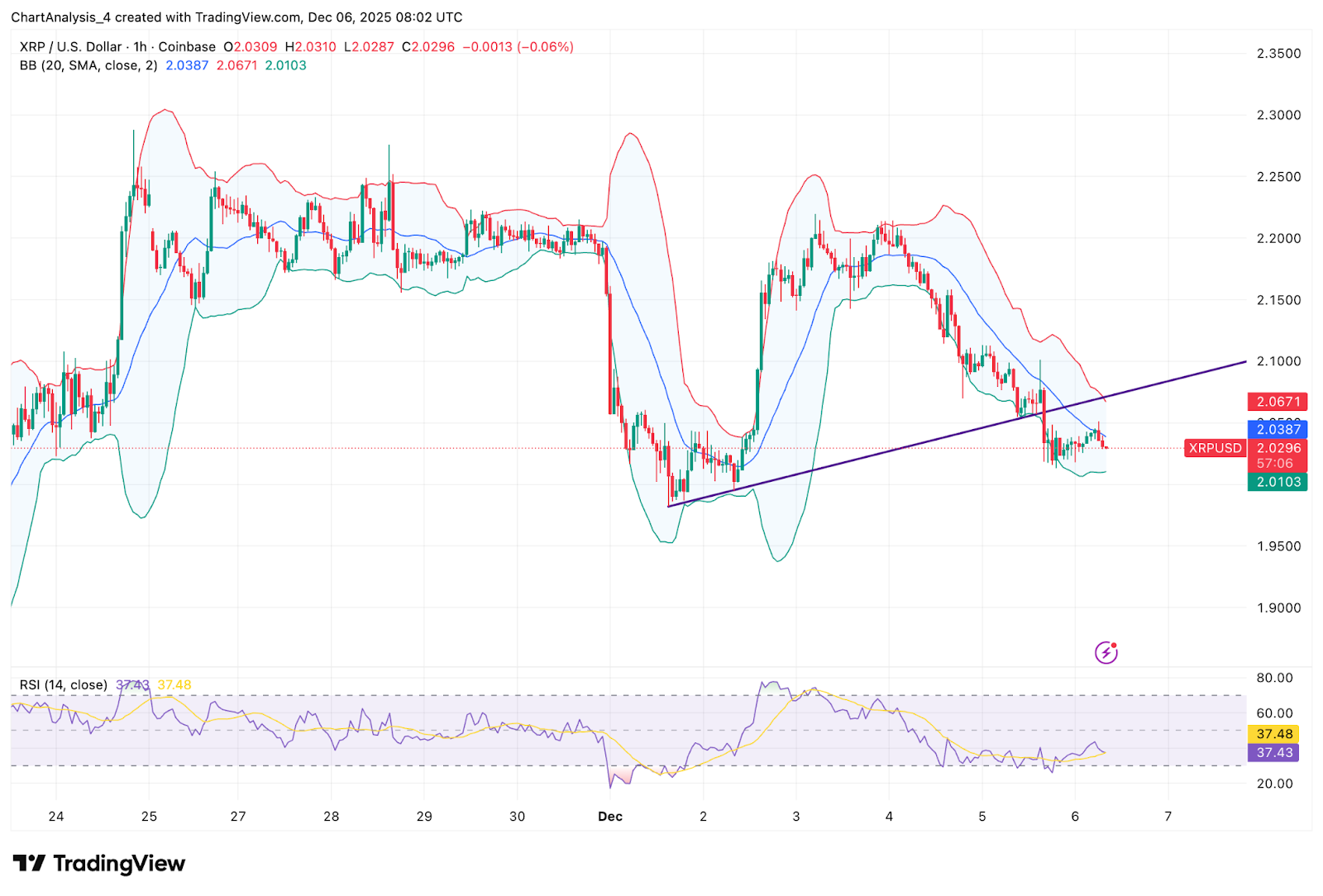 The next few sessions will determine whether XRP can consolidate above $2.00 or if the downtrend accelerates toward lower targets.