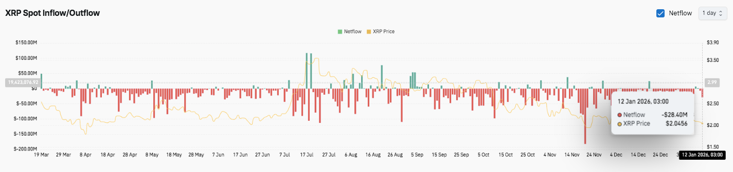 • XRP consolidates near $2.04, signaling digestion after late-2025 rally gains.