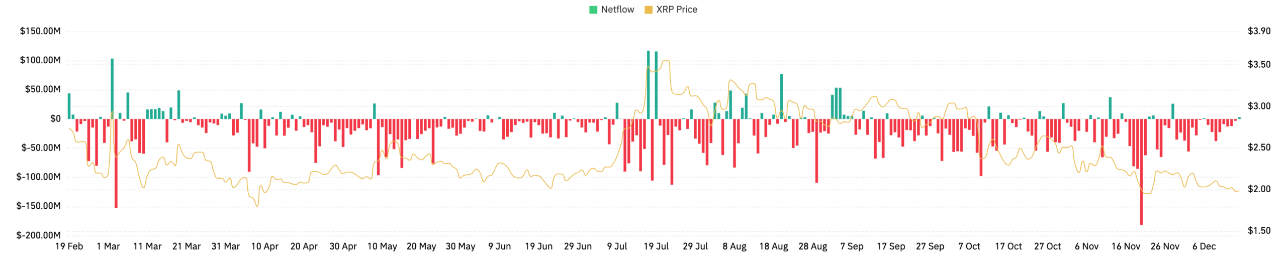 By mid-December, net flows turned modestly positive near $1.72 million. However, this shift has not driven a sustained price breakout. Hence, the data suggests cautious accumulation rather than aggressive buying. Until inflows strengthen meaningfully, XRP price may remain range-bound.