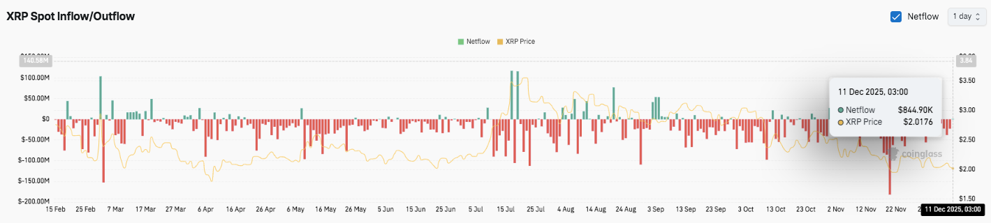 Brief inflow surges in July and August supported short rallies, yet sentiment remained weak. Recent readings show small inflows as XRP trades near $2.02. Moreover, the consistent outflow bias hints at reduced spot demand and cautious participation.