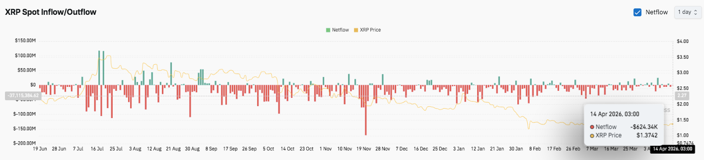 Additionally, spot flow data shows persistent outflows over recent months, signaling continued selling pressure. However, these outflows have started to ease. Recent near-neutral flows suggest that selling momentum is weakening. Significantly, this stabilization aligns with XRP’s current price consolidation.