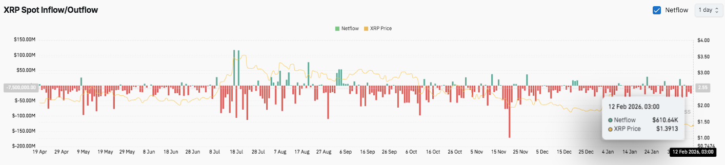 The technical picture shows XRP attempting to base after a sharp deleveraging phase. Open interest has compressed, and speculative exposure has cooled. Consequently, volatility could expand once leverage rebuilds.