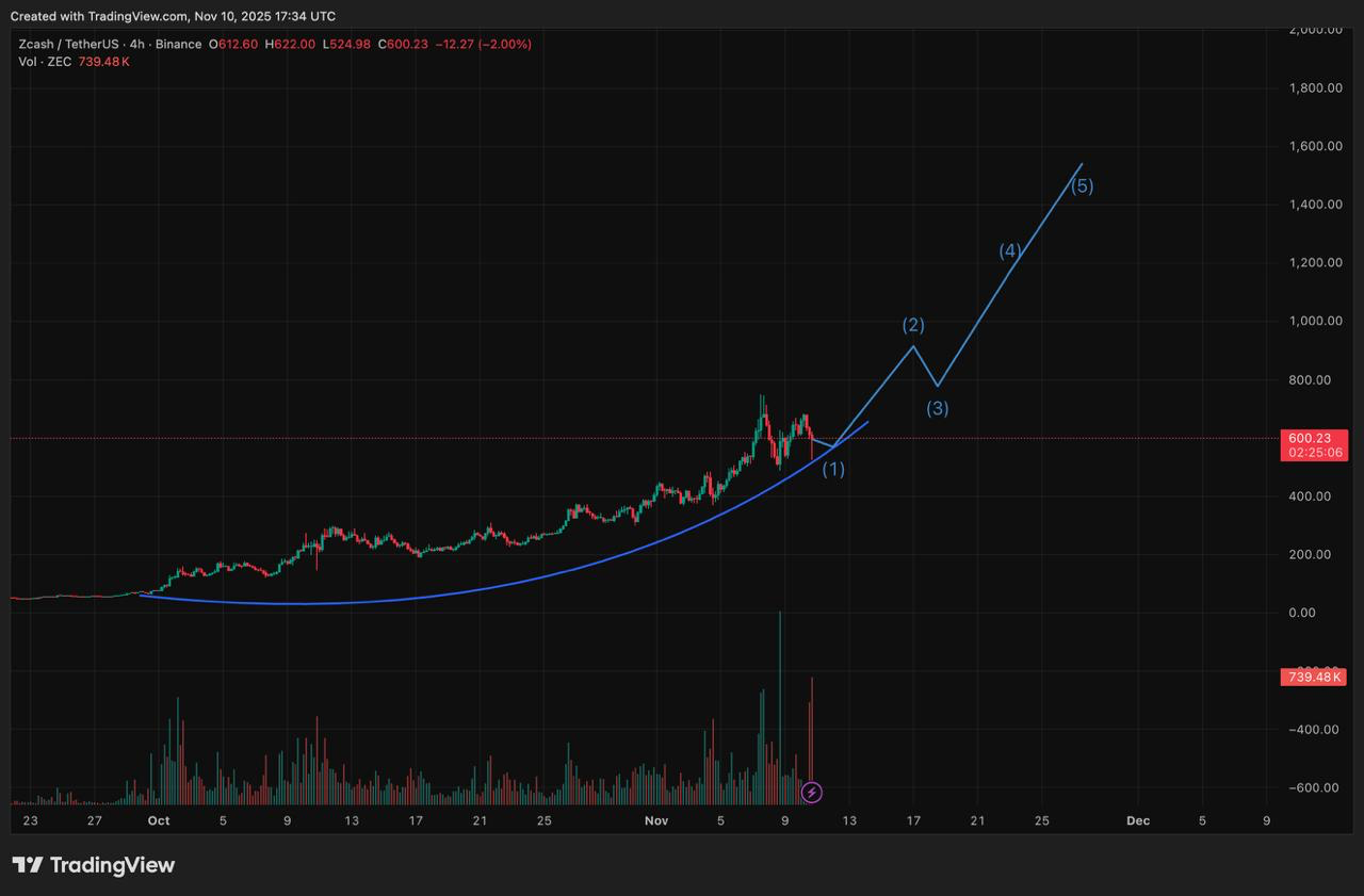 The crypto analyst believes that the ZEC price is well-positioned to reach $1,500 in the near future if the support level around $500 holds strong.